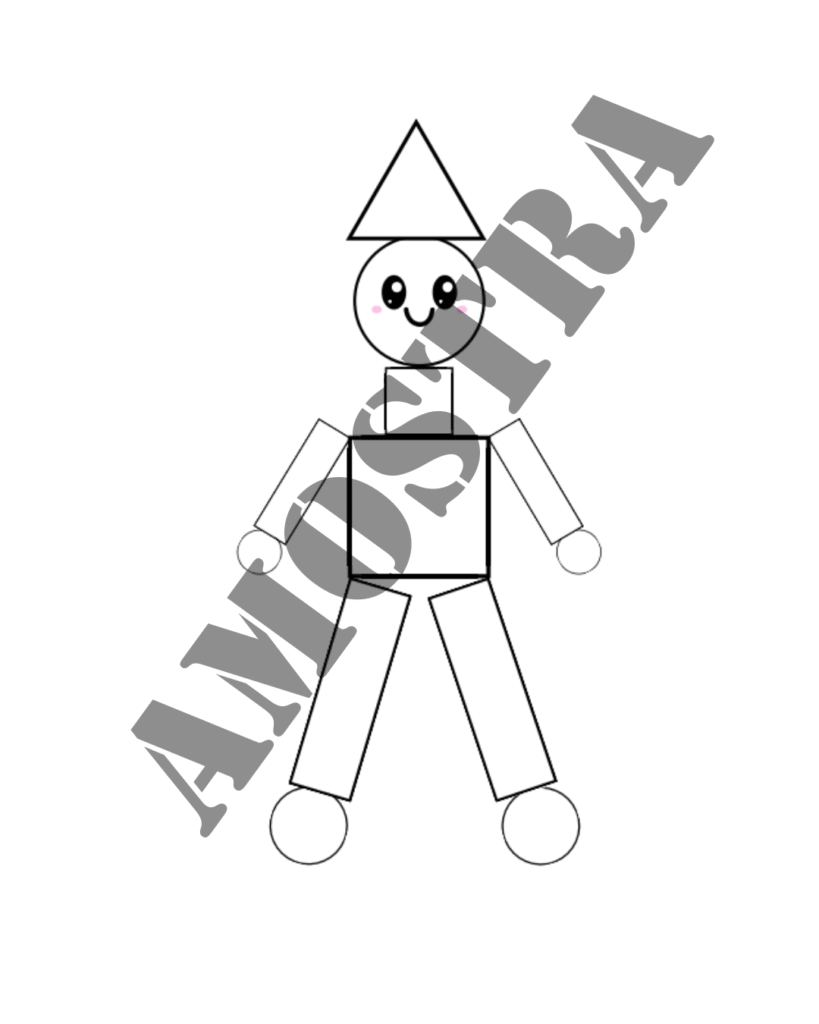O Molde Boneco Geométrico é indicado para crianças da Educação Infantil e turmas em fase de alfabetização.