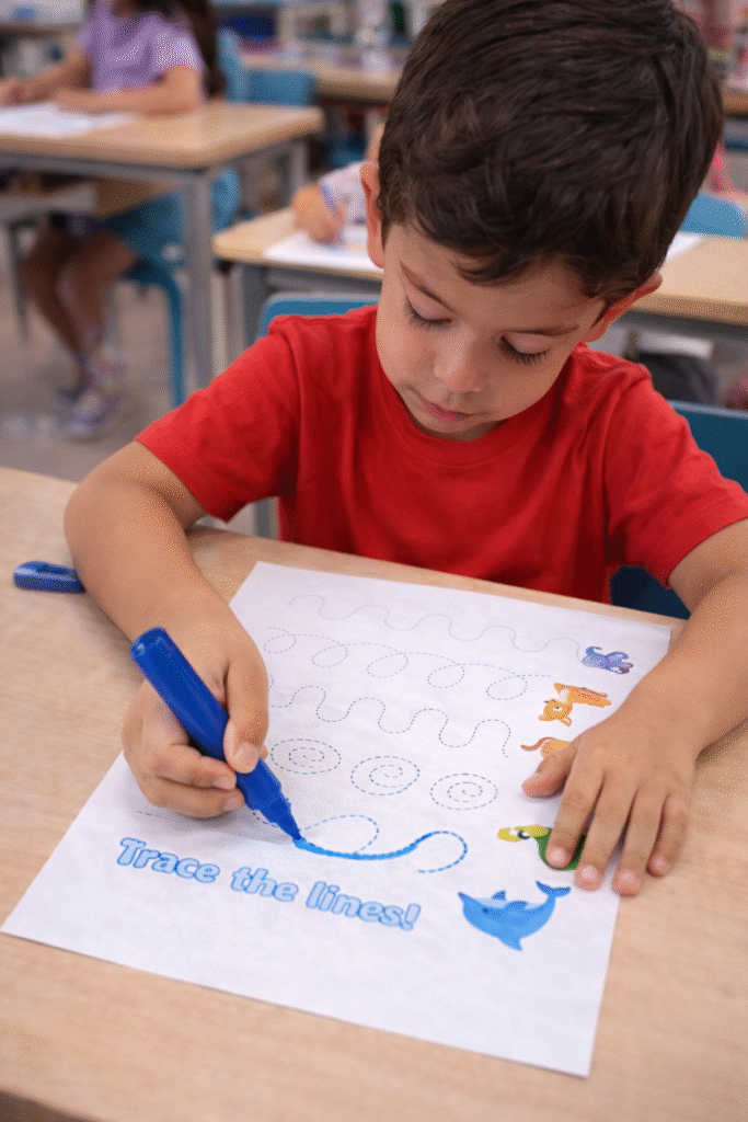 • A atividade de traçado e coordenação desenvolve a coordenação motora fina por meio de linhas onduladas, curvas e espirais.